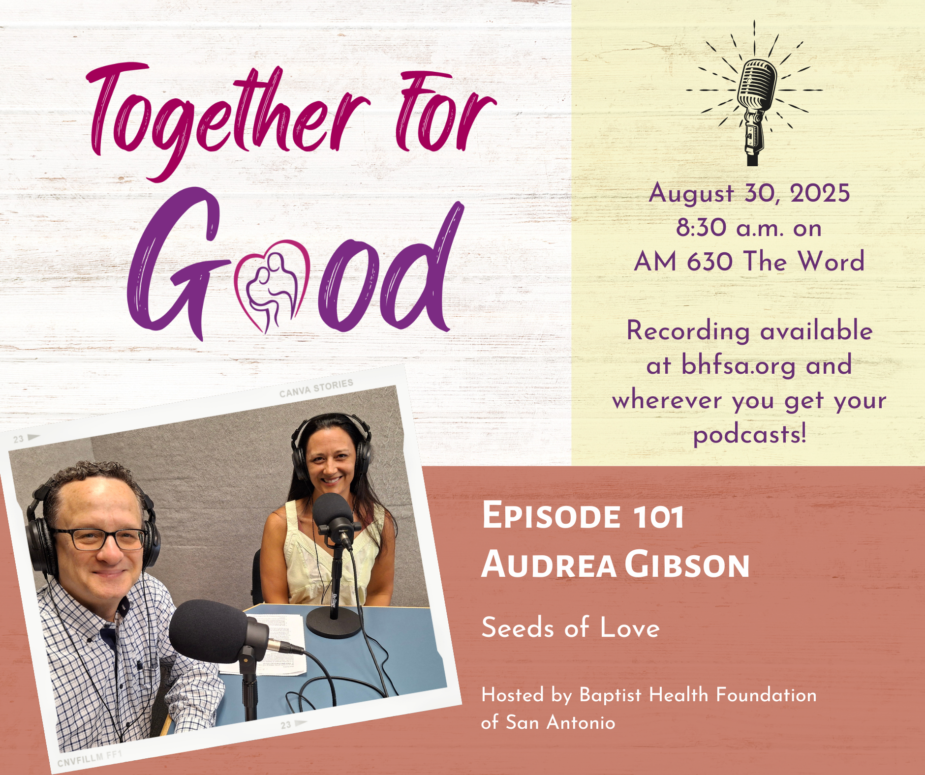 Share on FacebookTweetFollow usCategories: News, togetherforgoodPost navigationPreviousPrevious post:Episode 100: Threads of Love for Heaven’s SakeNextNext post:Episode 102: Meals on Wheels San AntonioRelated postsEpisode 103: Seton HomeOctober 7, 2025Episode 102: Meals on Wheels San AntonioOctober 7, 2025Episode 100: Threads of Love for Heaven’s SakeOctober 7, 2025Episode 99: Interfaith San Antonio AllianceOctober 7, 2025